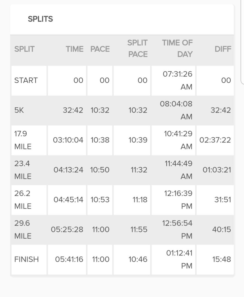 I did not worry much about time, although I wanted to keep pressing forward when I could and had hoped to finish around 5:30. I missed that target by 11 minutes, and I initially felt some disappointment. That’s evaporated now because as I reflect on the run, I did the best I could.