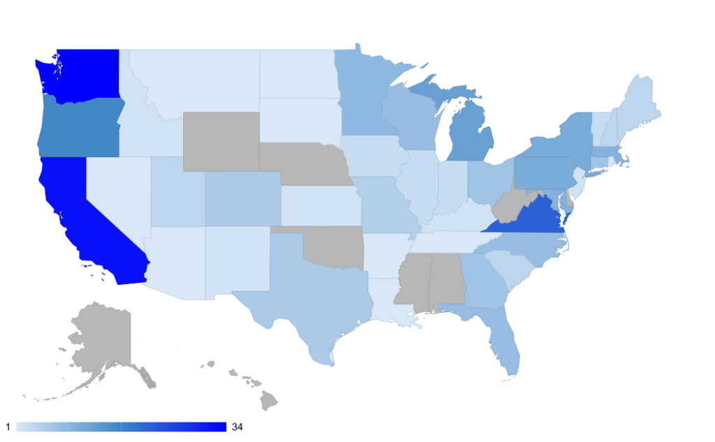 - 42 states (including D.C.)