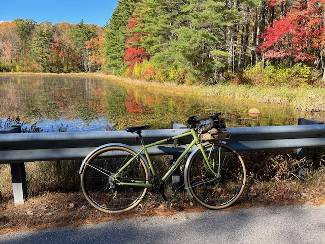 Not everybody has the same foliage experience this time of year, but this is still quite a fine view from Joe G. in Costa Mesa, California, on his recent 50-mile ride to coffee in pursuit of the grand prize.